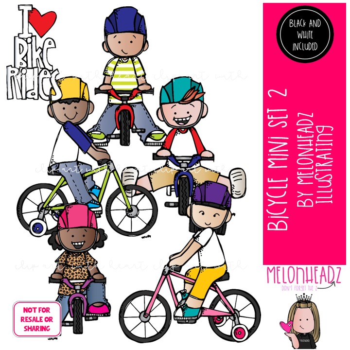 Bicycle clip art Set 2, Bike Riding clip art Mini: This illustrated set contains all of the clip art images as shown in the preview picture. COLORED and BLACK AND WHITE illustrations included.