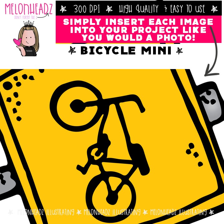 Bicycle clip art, Bike riding, safety Mini: This illustrated set contains all of the clip art images as shown in the preview picture. COLORED and BLACK AND WHITE illustrations included.