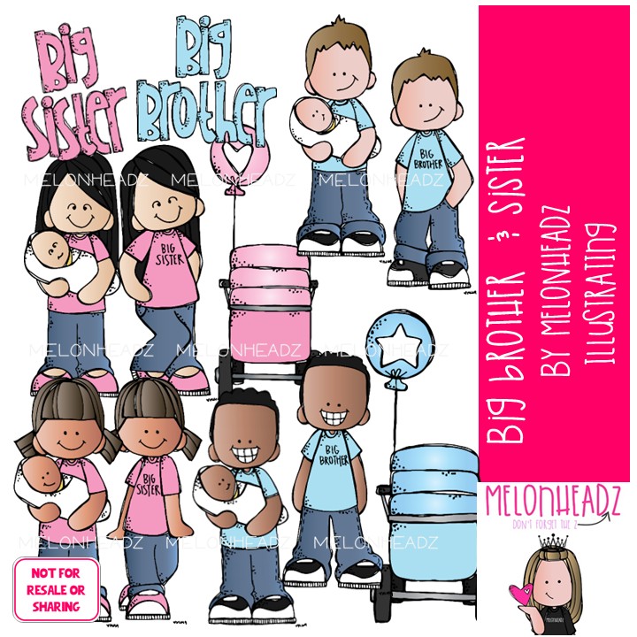 Big Brother & Sister clip art, baby, family COLORED Version: This illustrated set contains all of the clip art images as shown in the preview picture. COLORED illustrations included.