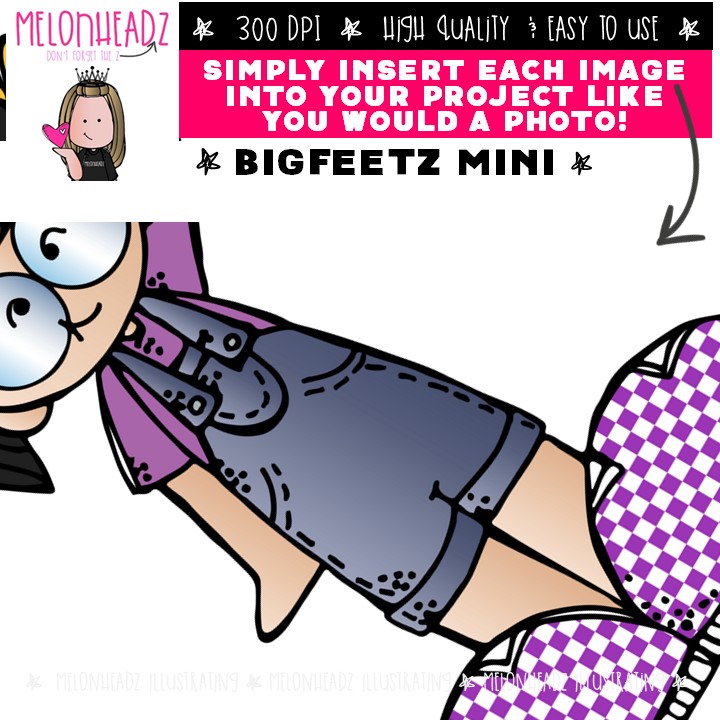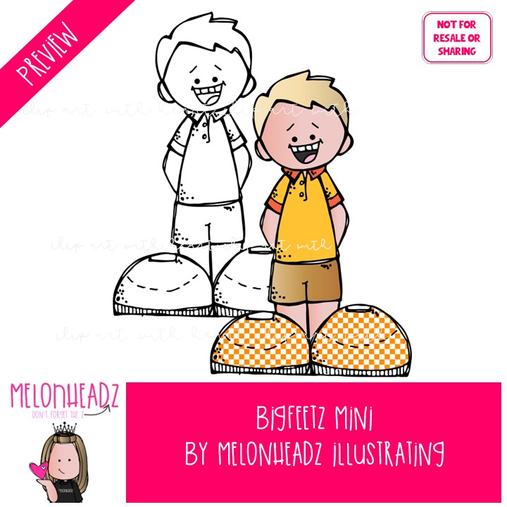 Bigfeetz clip art, kid Mini: This illustrated set contains all of the clip art images as shown in the preview picture. COLORED and BLACK AND WHITE illustrations included.