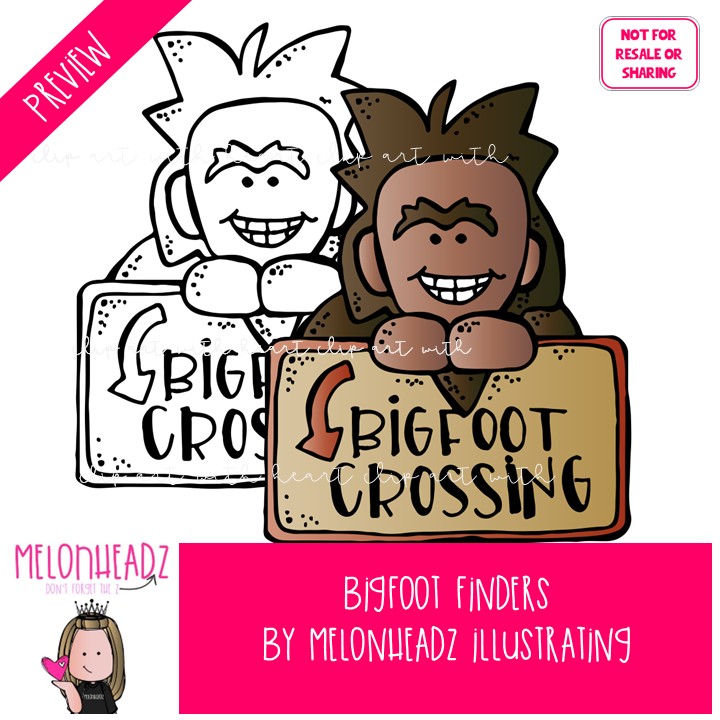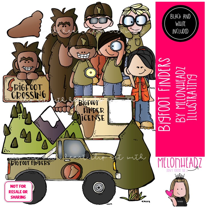 Bigfoot Finders clip art, Monster, Myth COMBO PACK: This illustrated set contains all of the clip art images as shown in the preview picture. COLORED and BLACK AND WHITE illustrations included.