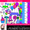 This set contains all of the clipart images as shown here, BLACK AND WHITE & COLORED illustrations included.