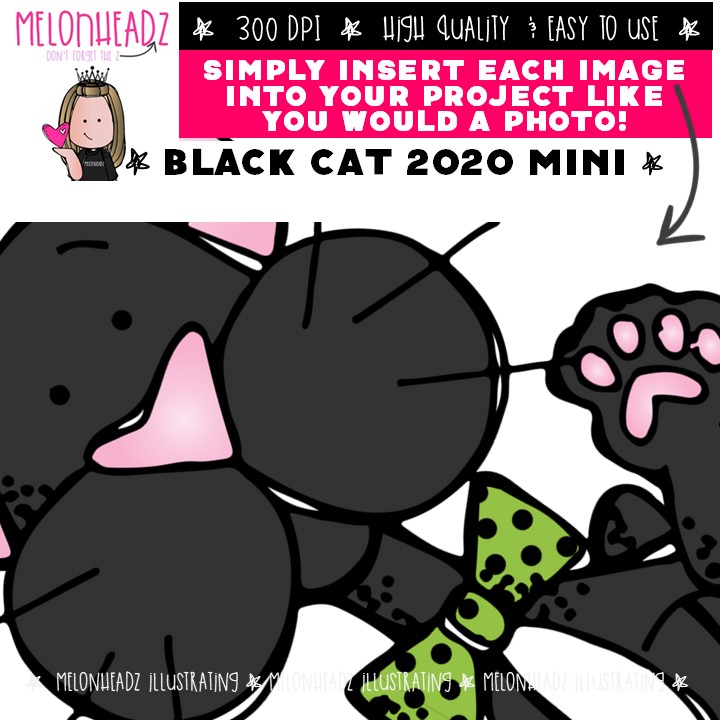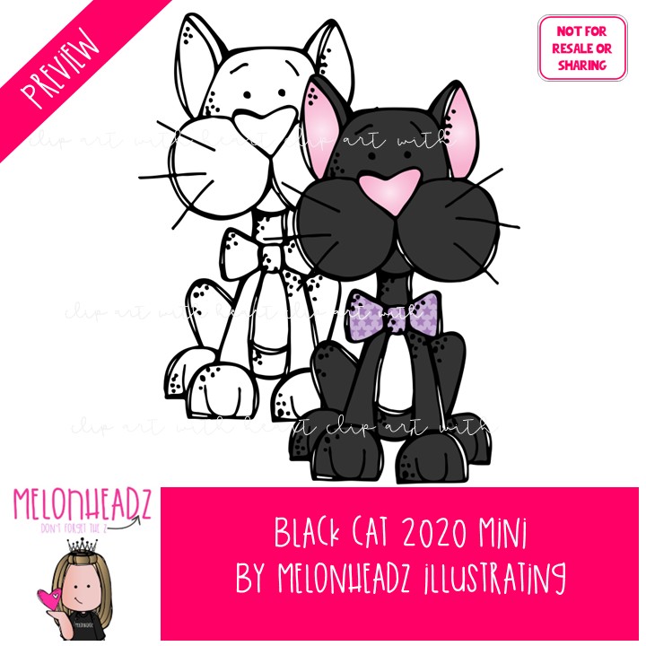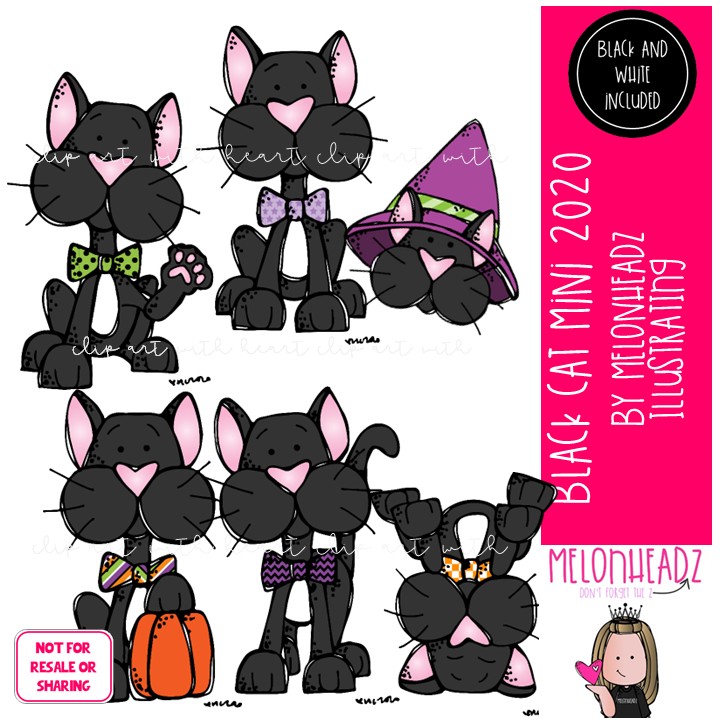 Black Cat clip art 2020, Halloween, witch Mini: This illustrated set contains all of the clip art images as shown in the preview picture. COLORED and BLACK AND WHITE illustrations included.