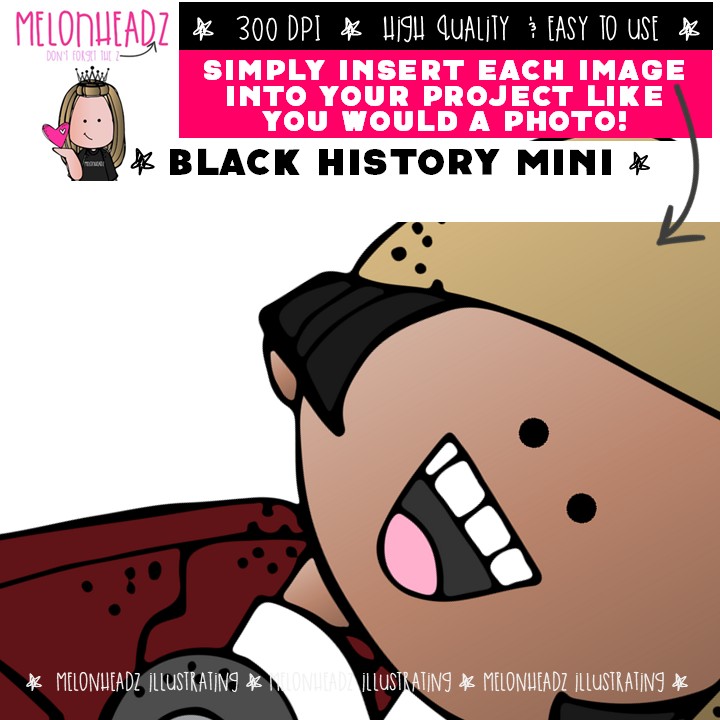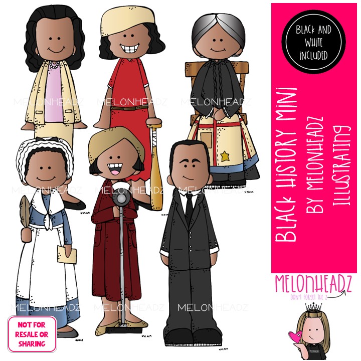 Black History clip art, Historical Figure Mini: This illustrated set contains all of the clip art images as shown in the preview picture. COLORED and BLACK AND WHITE illustrations included.