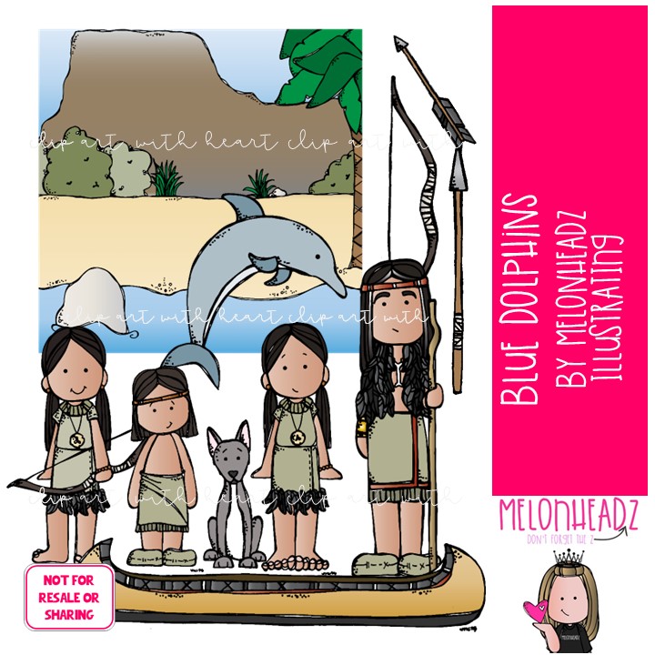 Blue Dolphins clip art, literature, book companion COLORED Version: This illustrated set contains all of the clip art images as shown in the preview picture. COLORED illustrations included.