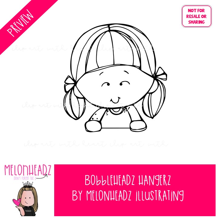 Bobbleheadz clip art, Hangerz, topper BLACK AND WHITE: This illustrated set contains all of the clip art images as shown in the preview picture. BLACK AND WHITE illustrations included.