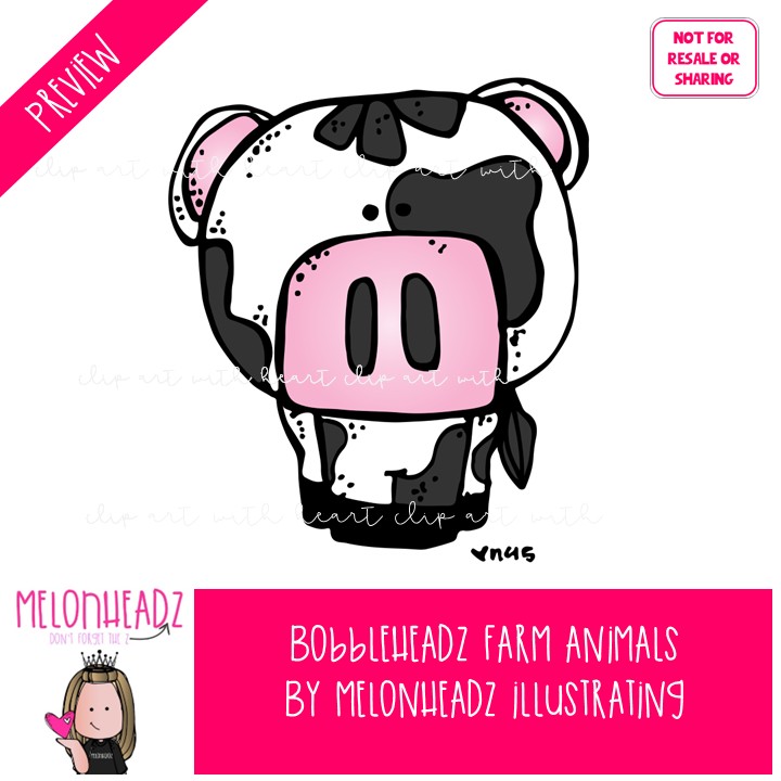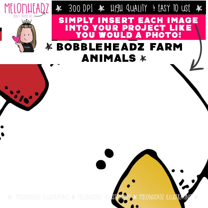 Bobbleheadz clip art, Farm Animals COLORED Version: This illustrated set contains all of the clip art images as shown in the preview picture. COLORED illustrations included.