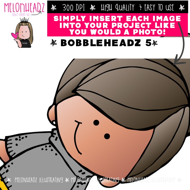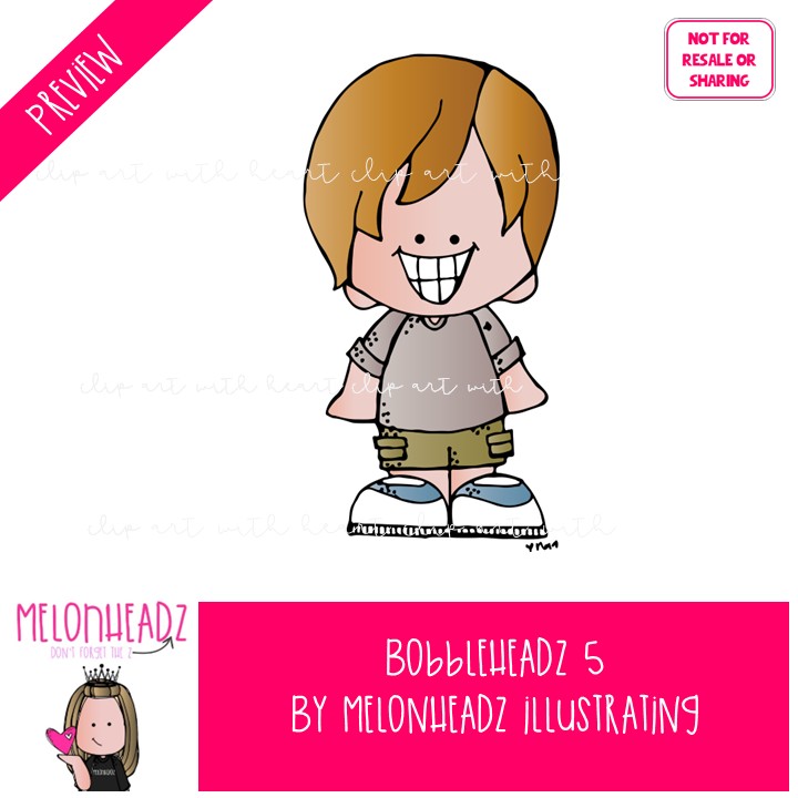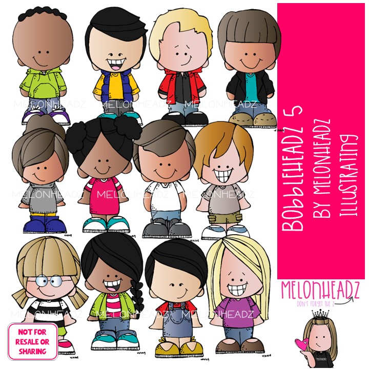 Bobbleheadz 5 clip art, kid COLORED Version: This illustrated set contains all of the clip art images as shown in the preview picture. COLORED illustrations included.