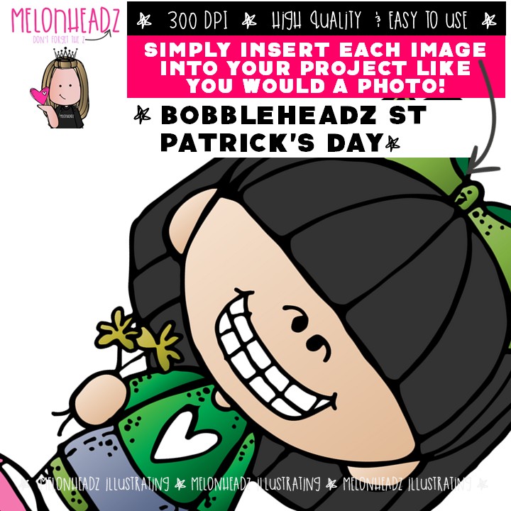 Bobbleheadz clip art, St. Patricks Day COLORED Version: This illustrated set contains all of the clip art images as shown in the preview picture. COLORED illustrations included.