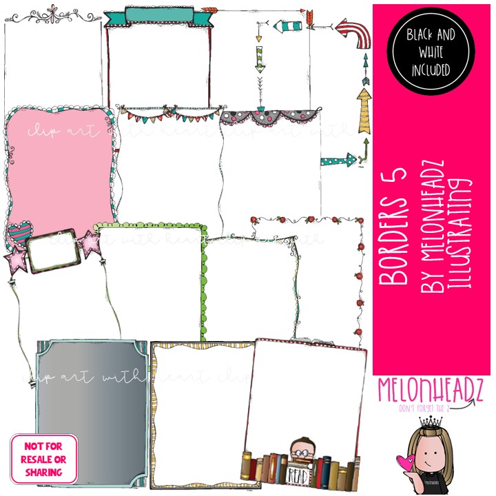 Borders clip art 5, frames, blank COMBO PACK: This illustrated set contains all of the clip art images as shown in the preview picture. COLORED and BLACK AND WHITE illustrations included.