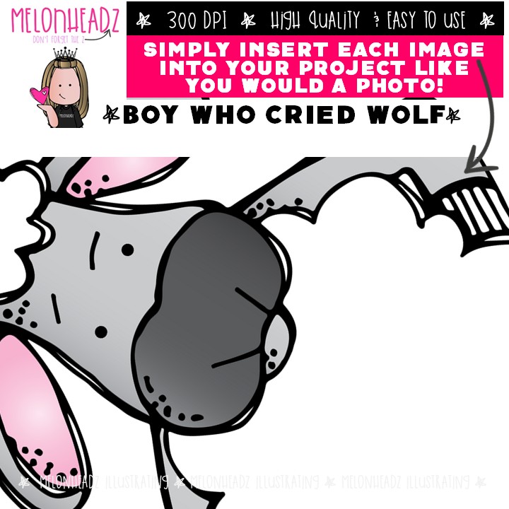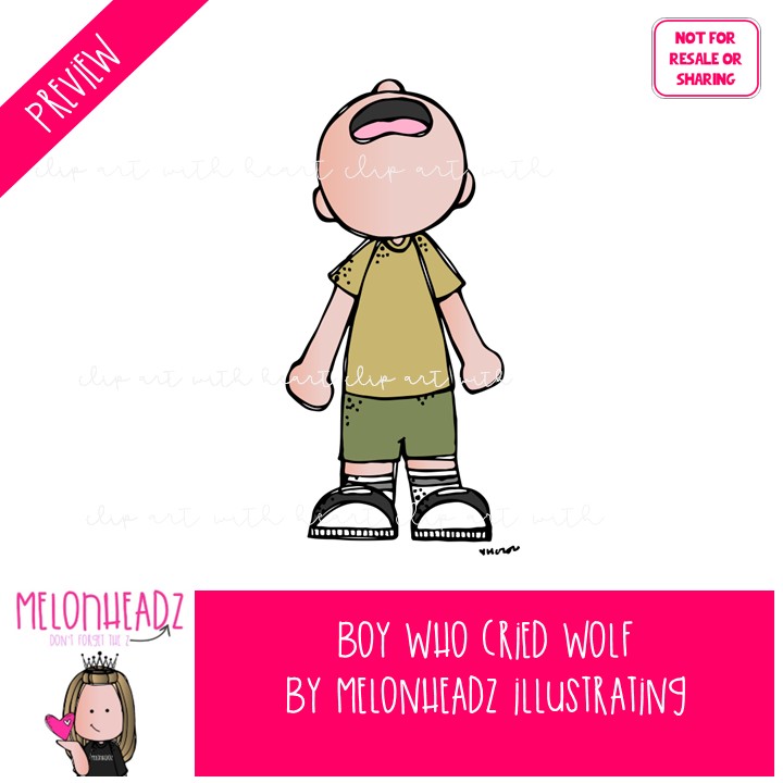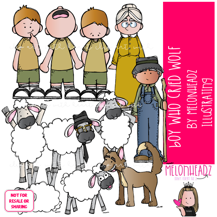 Boy who cried wolf clip art, literature, book companion COLORED Version: This illustrated set contains all of the clip art images as shown in the preview picture. COLORED illustrations included.
