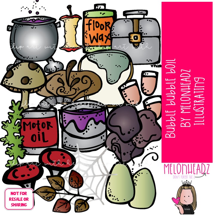 Bubble Bubble Boil clip art, literature, book companion, Halloween COLORED Version: This illustrated set contains all of the clip art images as shown in the preview picture. COLORED illustrations included.