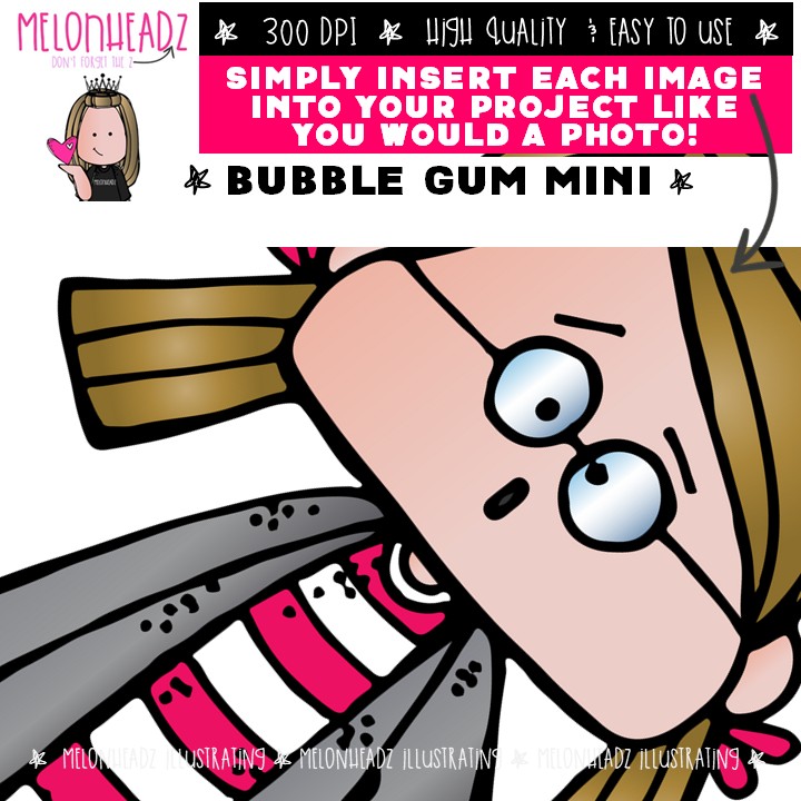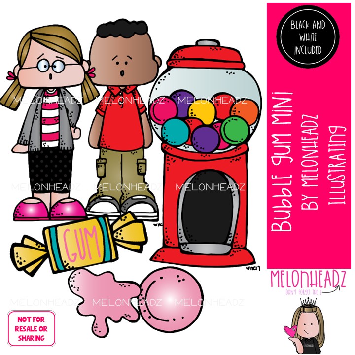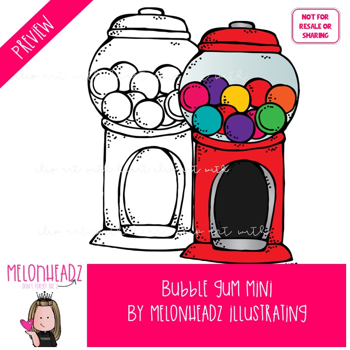 Bubble Gum clip art, blowing, machine Mini: This illustrated set contains all of the clip art images as shown in the preview picture. COLORED and BLACK AND WHITE illustrations included.