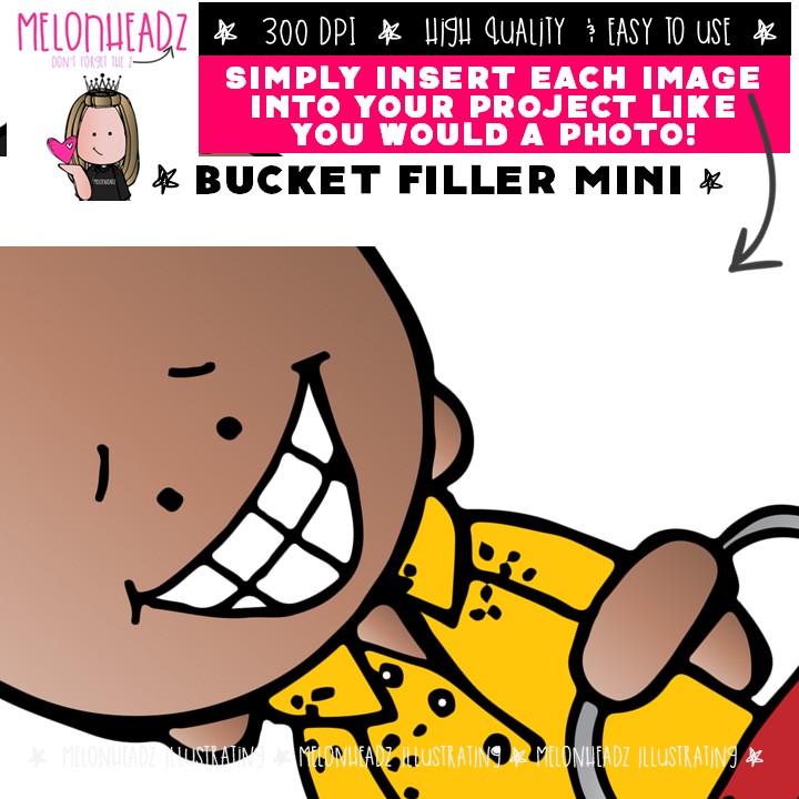 Bucket Filler clip art, Be Kind, kidlettes Mini: This illustrated set contains all of the clip art images as shown in the preview picture. COLORED and BLACK AND WHITE illustrations included.