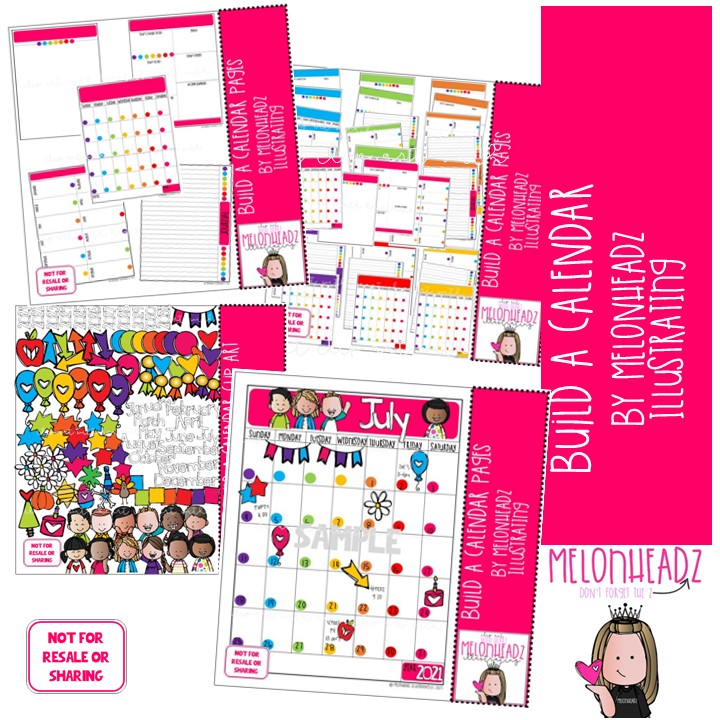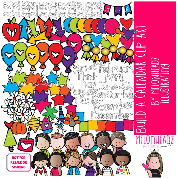 Build A Calendar, EDITABLE, HUGE printable and clip art set: This illustrated set contains all of the clip art images as shown in the preview picture. COLORED and BLACK AND WHITE illustrations included.