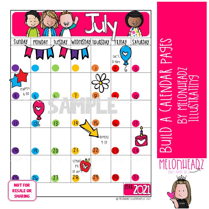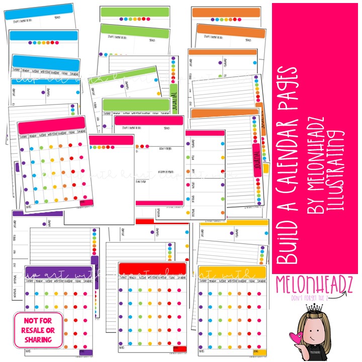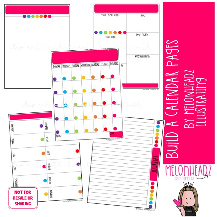 YOU MAY NOT use this set to create calendars to sell. This pack and printable is for personal use only.