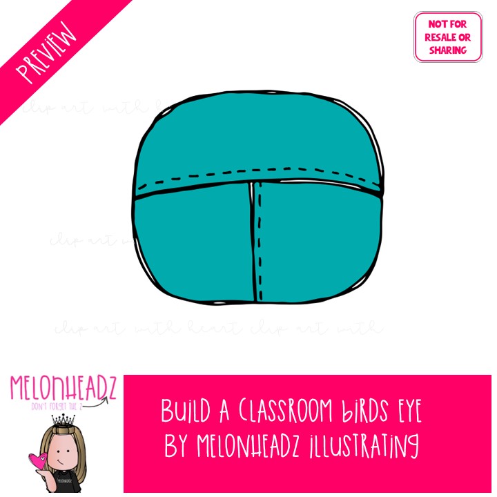 Build A Classroom clip art, Birds eye, furniture, COLORED Version: This illustrated set contains all of the clip art images as shown in the preview picture. COLORED illustrations only included.