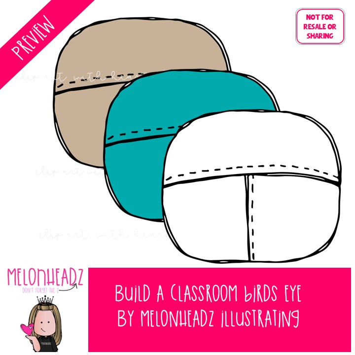 Build A Classroom clip art, Birds eye, furniture, TRIPLE PACK: This illustrated set contains all of the clip art images as shown in the preview picture. Tan, COLORED, TAN and BLACK AND WHITE illustrations included.