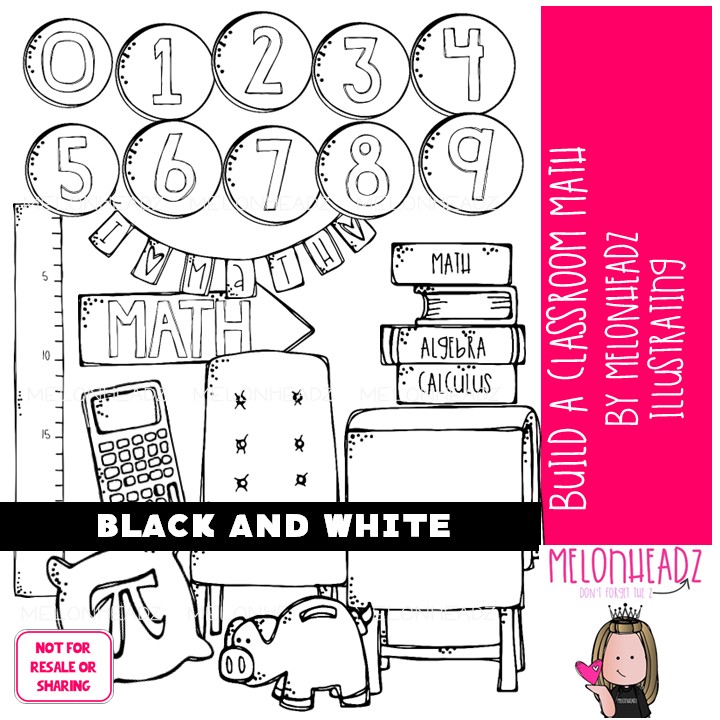 Build a Classroom clip art, Math BLACK AND WHITE: This illustrated set contains all of the clip art images as shown in the preview picture. BLACK AND WHITE illustrations included.