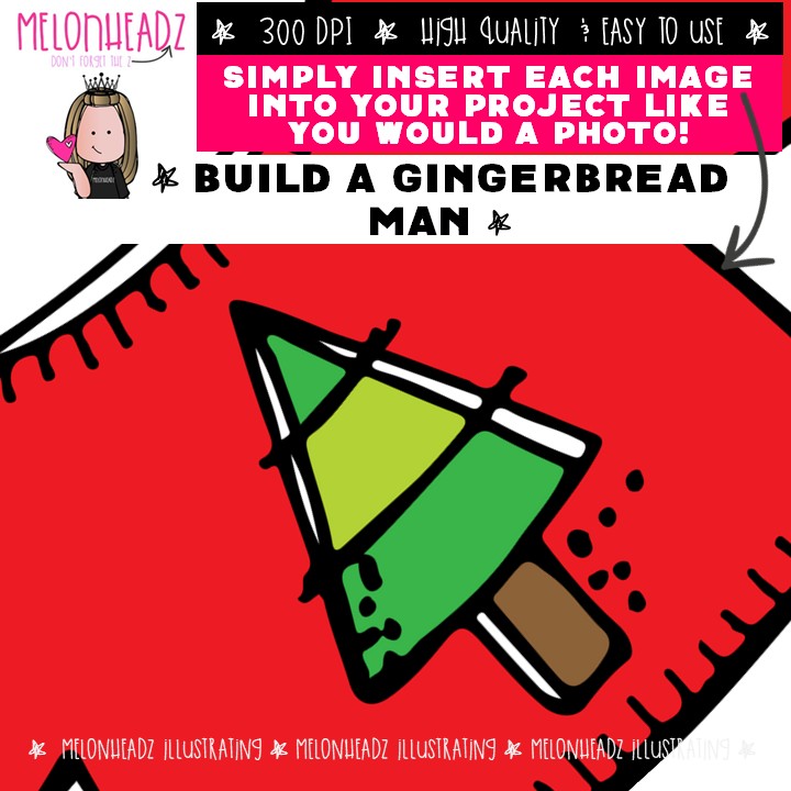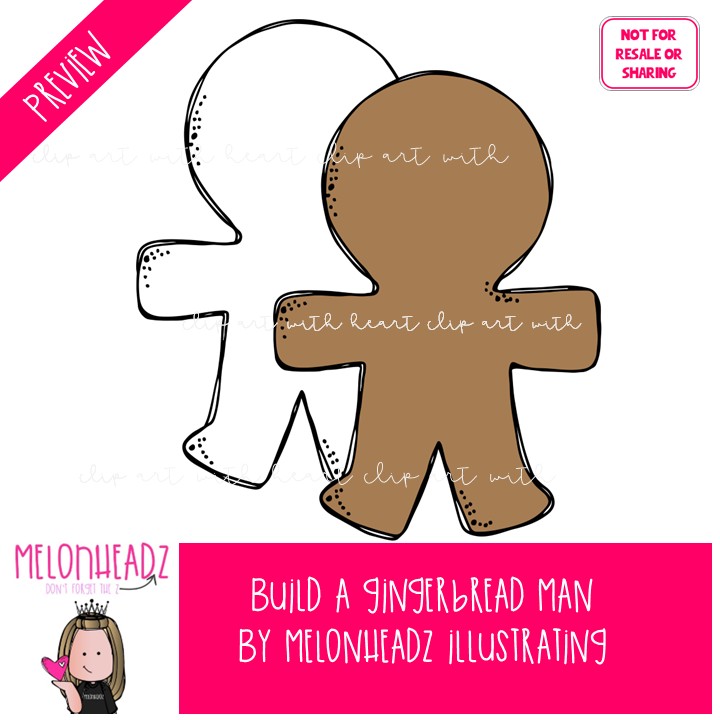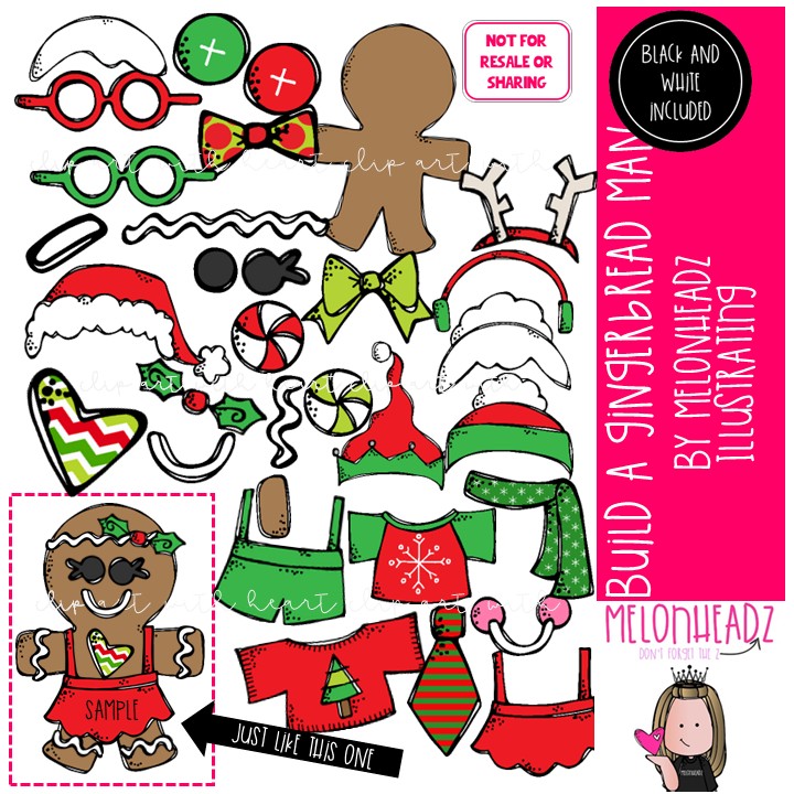 Build A Gingerbread Man clip art, Christmas clip art COMBO PACK: This illustrated set contains all of the clip art images as shown in the preview picture. COLORED and BLACK AND WHITE illustrations included.