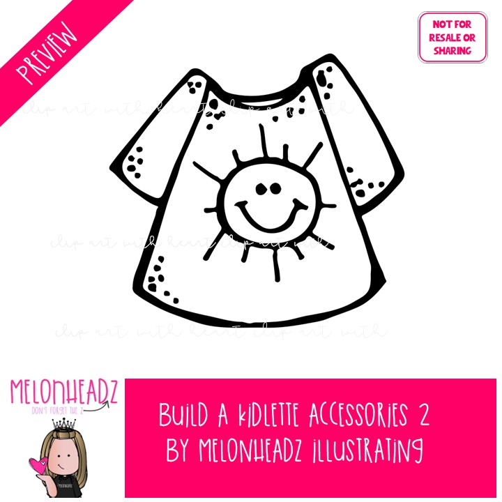 Build A Kidlette Accessories clip art Set 2, Build A Kid clip art BLACK AND WHITE: This illustrated set contains all of the clip art images as shown in the preview picture. BLACK AND WHITE  illustrations included.