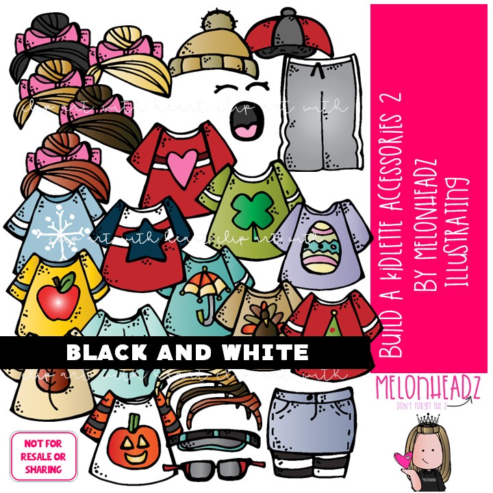 Build a Kidlette clip art Accessories Set 2, Build A Kid clip art BLACK AND WHITE
