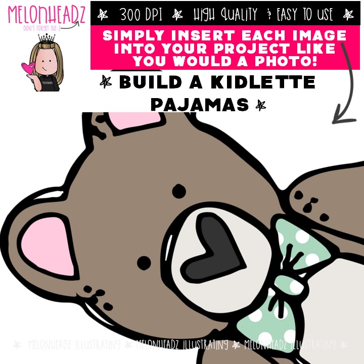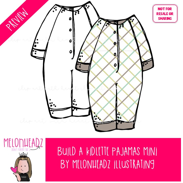 Build a Kidlette clip art, Pajamas clip art, clothing clip art COMBO PACK: This illustrated set contains all of the clip art images as shown in the preview picture. COLORED and BLACK AND WHITE illustrations included.