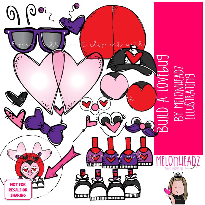 Build a Lovebug clip art, Valentine clip art, Insect clip art COLORED Version: This illustrated set contains all of the clip art images as shown in the preview picture. COLORED illustrations included.