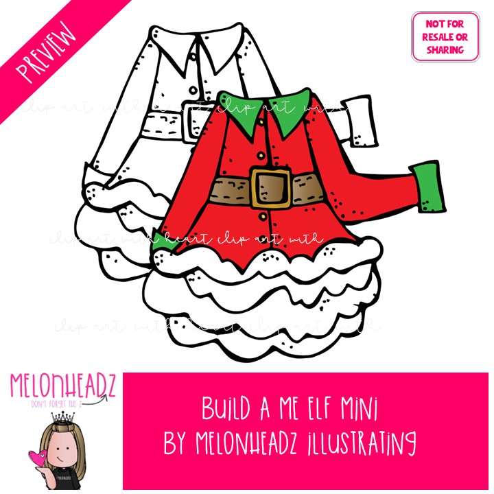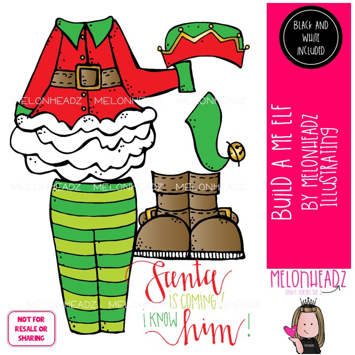 Build a Me clip art, Elf clip art, Christmas clip art Mini: This illustrated set contains all of the clip art images as shown in the preview picture. COLORED and BLACK AND WHITE illustrations included.