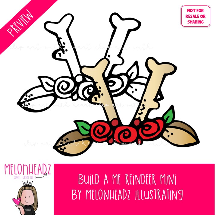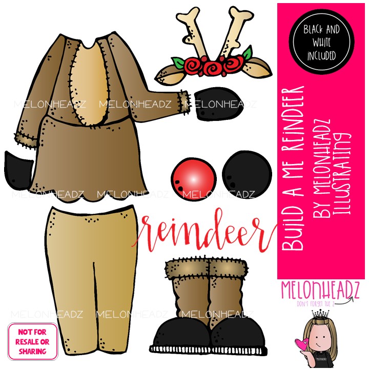 Build A Me clip art, Reindeer clip art, Christmas clip art Mini: This illustrated set contains all of the clip art images as shown in the preview picture. COLORED and BLACK AND WHITE illustrations included.