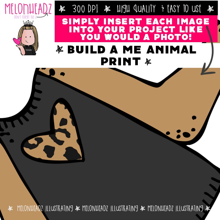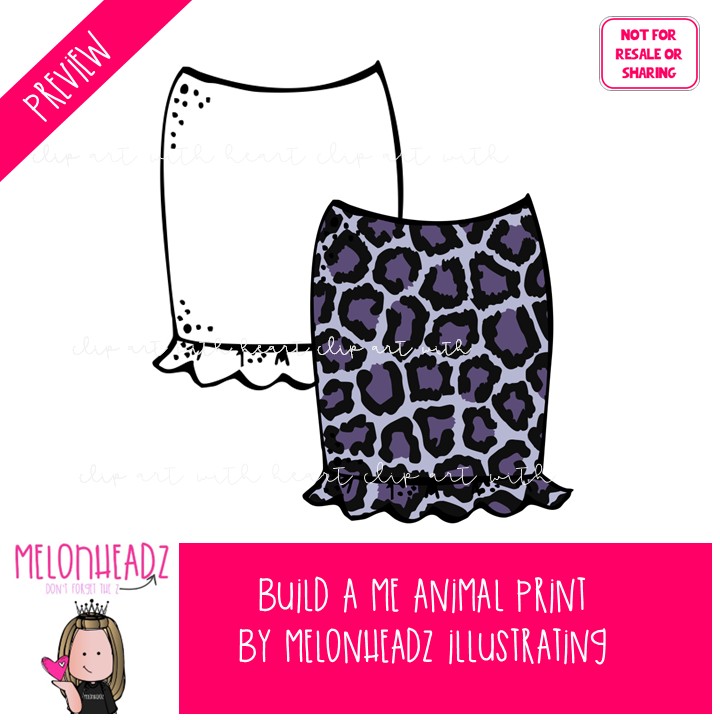 Build a Me clip art, Animal Print clip art COMBO PACKi: This illustrated set contains all of the clip art images as shown in the preview picture. COLORED  and BLACK AND WHITE illustrations included.