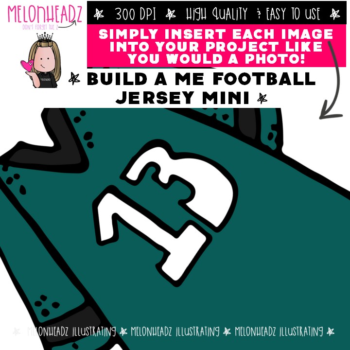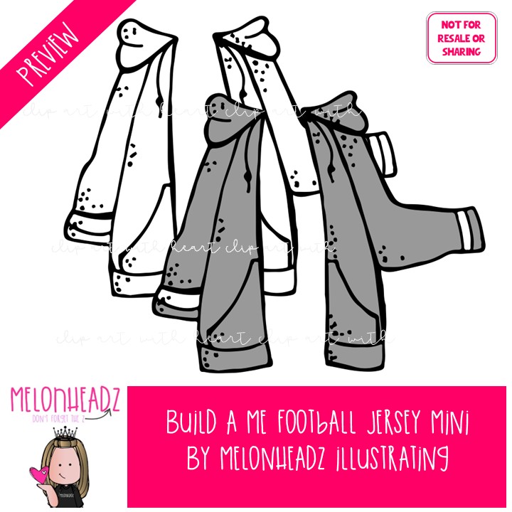 Build a Me clip art, Football Jersey Mini: This illustrated set contains all of the clip art images as shown in the preview picture. COLORED and BLACK AND WHITE illustrations included.