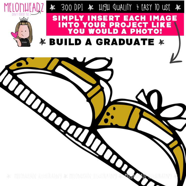 Build A Me Graduate clip art, Me, Teacher, Graduation Mini: This illustrated set contains all of the clip art images as shown in the preview picture. COLORED and BLACK AND WHITE illustrations included.