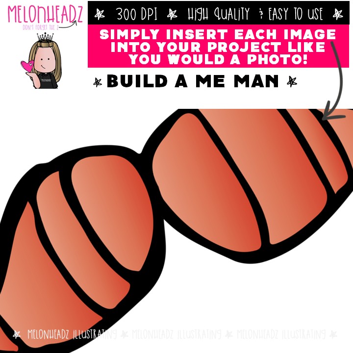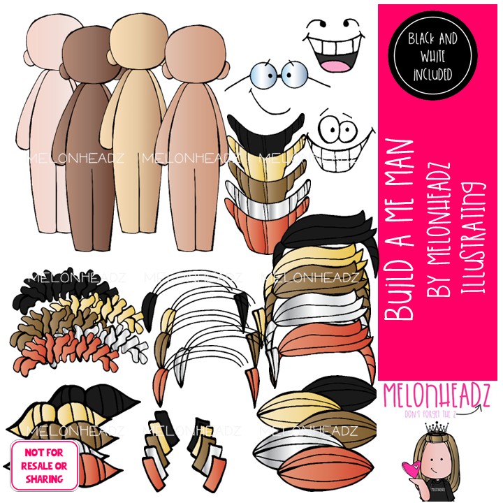 Build A Me Man clip art, bodies Mini: This illustrated set contains all of the clip art images as shown in the preview picture. COLORED and BLACK AND WHITE illustrations included.