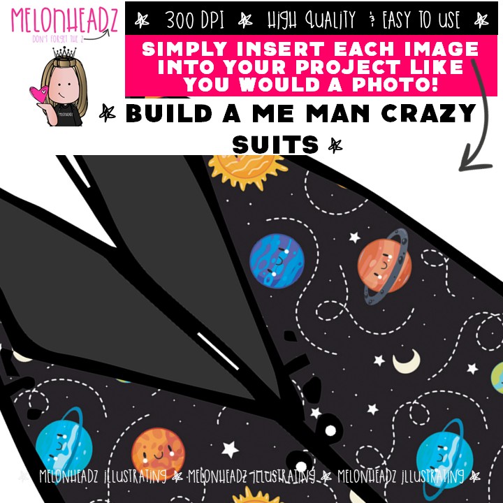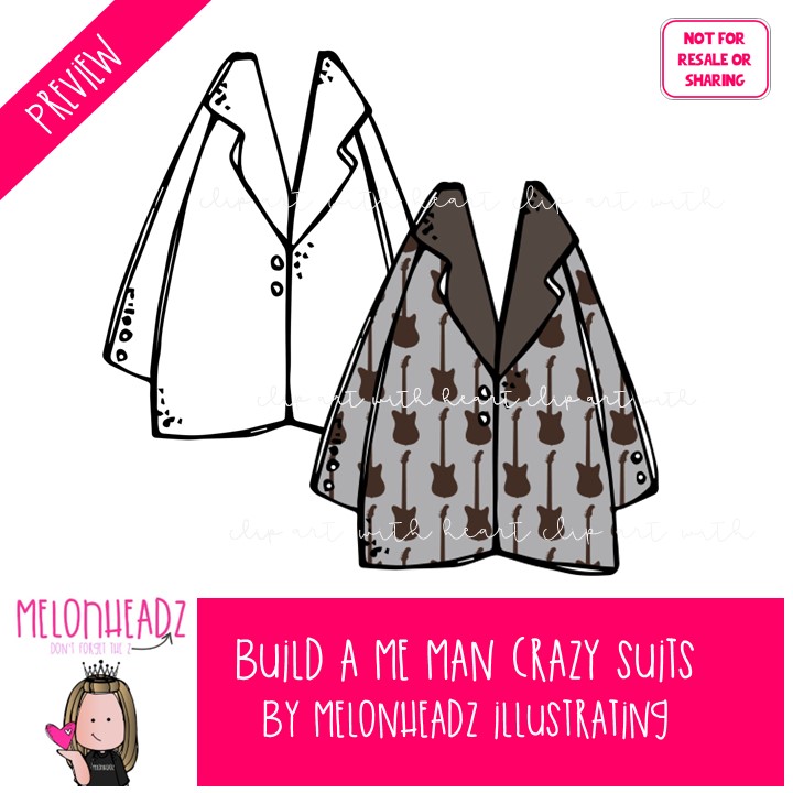 Build a Me Man clip art, Crazy suits clip art COMBO PACK: This illustrated set contains all of the clip art images as shown in the preview picture. COLORED and BLACK AND WHITE illustrations included.