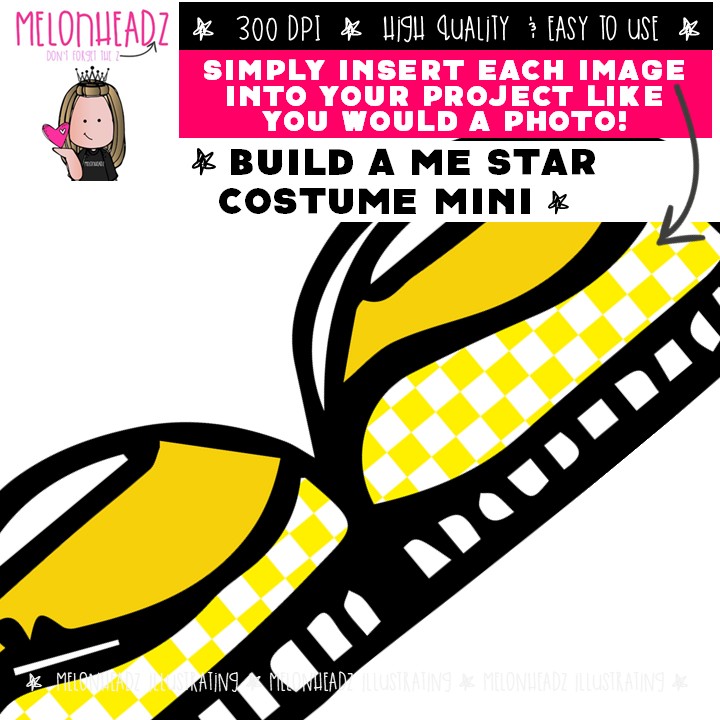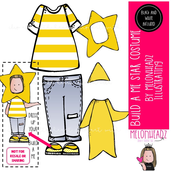 Build a Me Star Costume clip art, Teacher Mini: This illustrated set contains all of the clip art images as shown in the preview picture. COLORED and BLACK AND WHITE illustrations included.