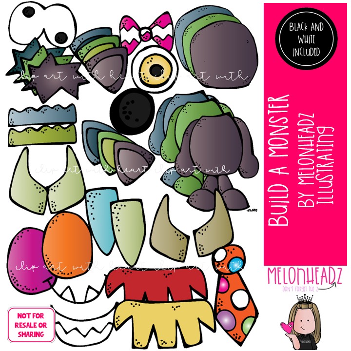 Build a Monster clip art, Mix & Match Monster parts, Halloween COMBO PACK: This illustrated set contains all of the clip art images as shown in the preview picture. COLORED and BLACK AND WHITE illustrations included.