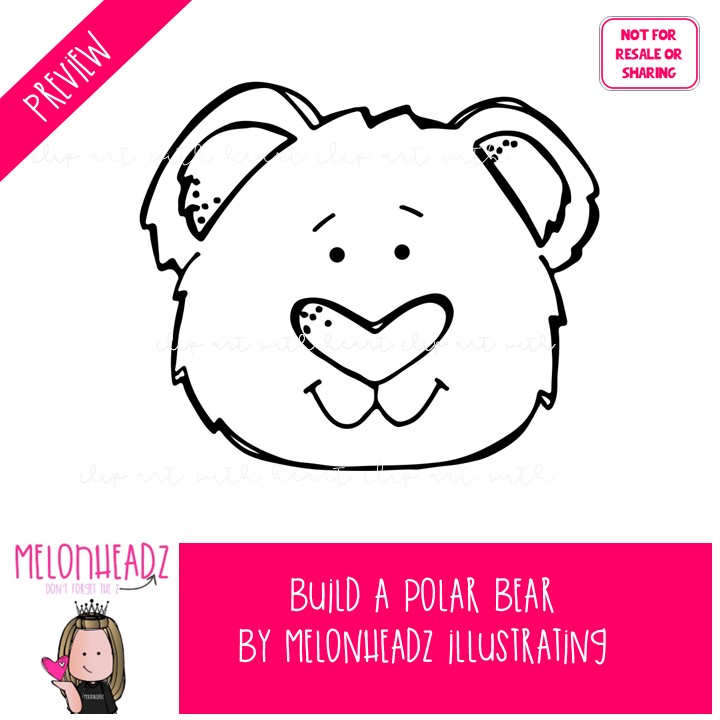 Build A Polar Bear clip art, Arctic Animal clip art BLACK AND WHITE: This illustrated set contains all of the clip art images as shown in the preview picture. BLACK AND WHITE  illustrations included.
