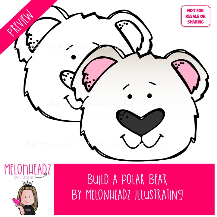 Build A Polar Bear clip art, Arctic Animal clip art COMBO PACK: This illustrated set contains all of the clip art images as shown in the preview picture. COLORED and BLACK AND WHITE  illustrations included.