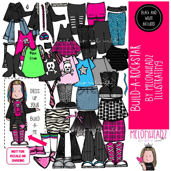 Build A Rockstar clip art, Build A Me, Teacher, digital paper doll COMBO PACK: This illustrated set contains all of the clip art images as shown in the preview picture. COLORED and BLACK AND WHITE illustrations included.