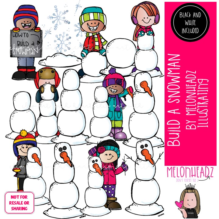 Build a snowman clip art, winter, sequence, snowflake COMBO PACK: This illustrated set contains all of the clip art images as shown in the preview picture. COLORED and BLACK AND WHITE illustrations included.