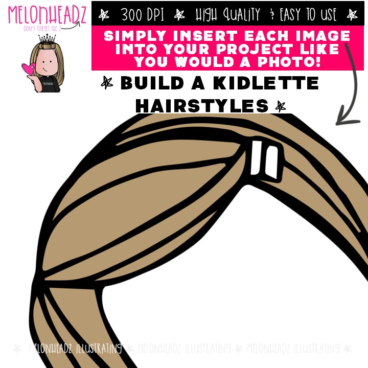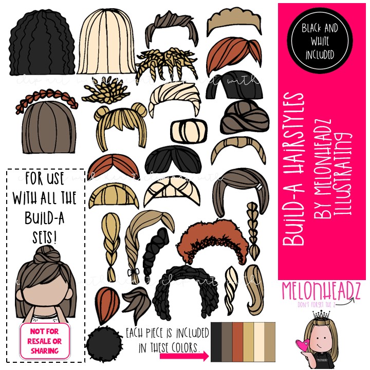 Build A Teacher Hair Styles clip art, Build a Me clip art, Kidlette COMBO PACK: This illustrated set contains all of the clip art images as shown in the preview picture. COLORED and BLACK AND WHITE  illustrations included.