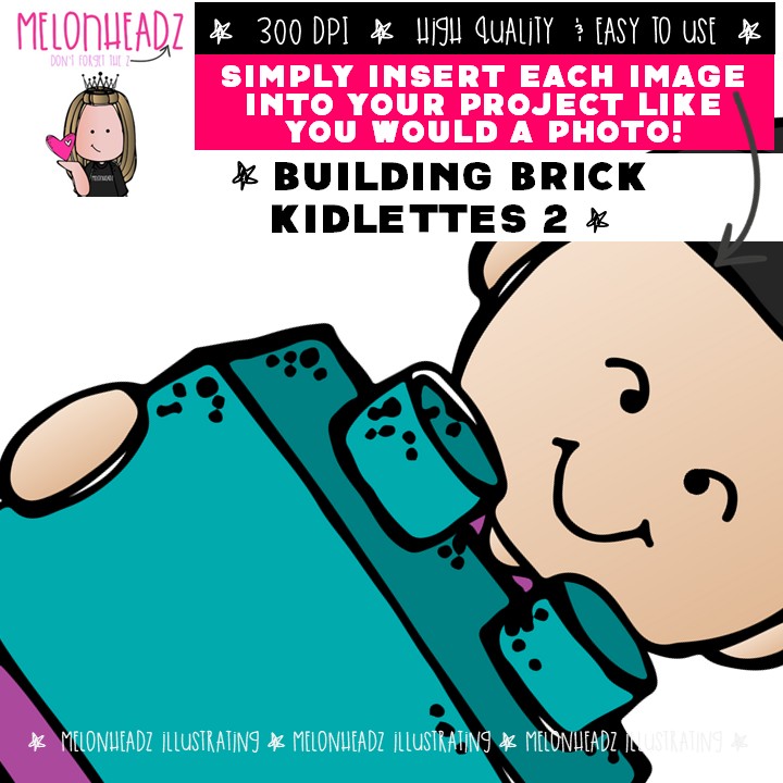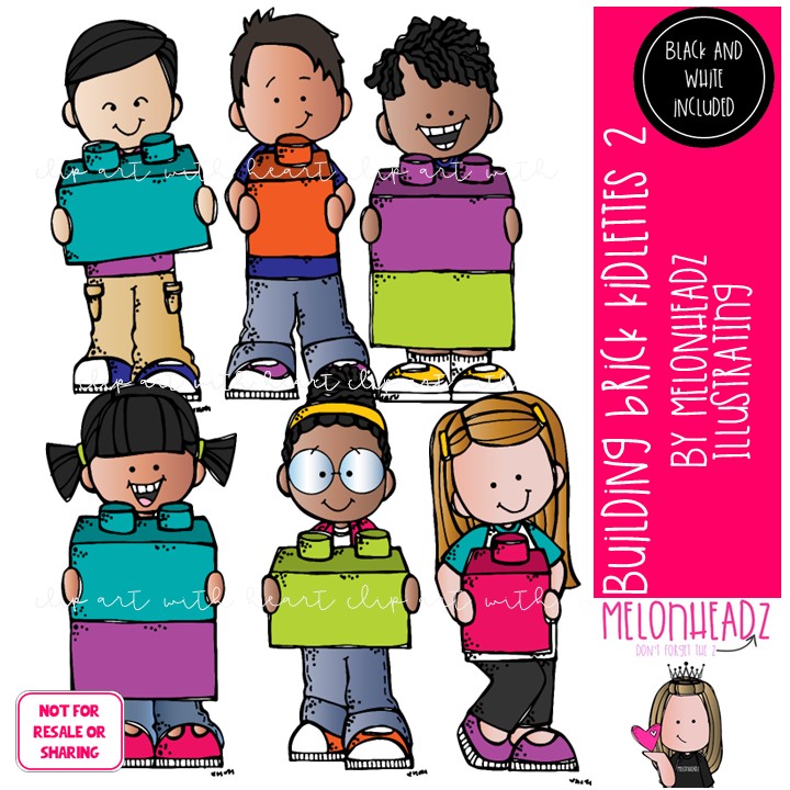 Building Brick Kidlettes clip art 2, Math, Construction Bricks Mini: This illustrated set contains all of the clip art images as shown in the preview picture. COLORED and BLACK AND WHITE illustrations included.