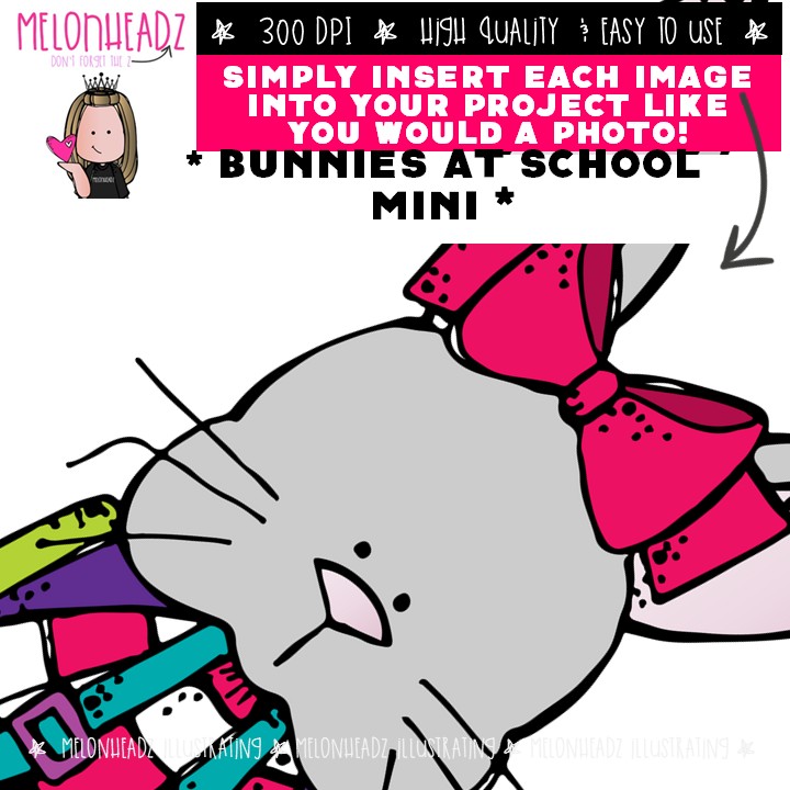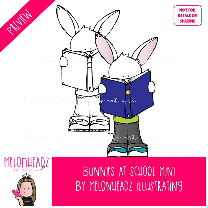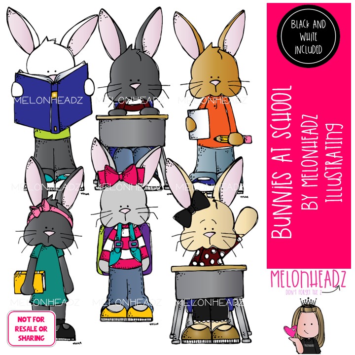 Bunnies clip art, school, classroom, reading Mini: This illustrated set contains all of the clip art images as shown in the preview picture. COLORED and BLACK AND WHITE illustrations included.