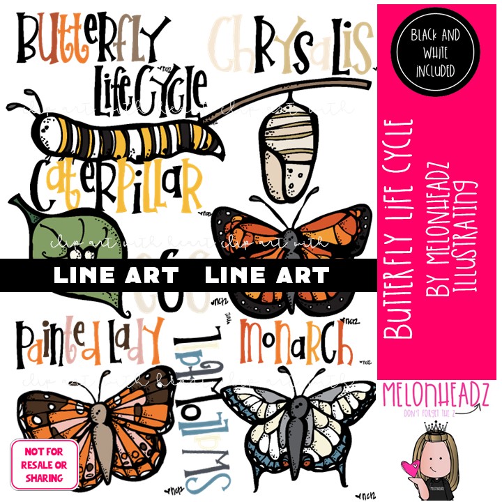 Butterfly Life Cycle clip art Butterfly clip art LINE ART and BLACK AND WHITE: This illustrated set contains all of the clip art images as shown in the preview picture.  LINE ART  illustrations included.