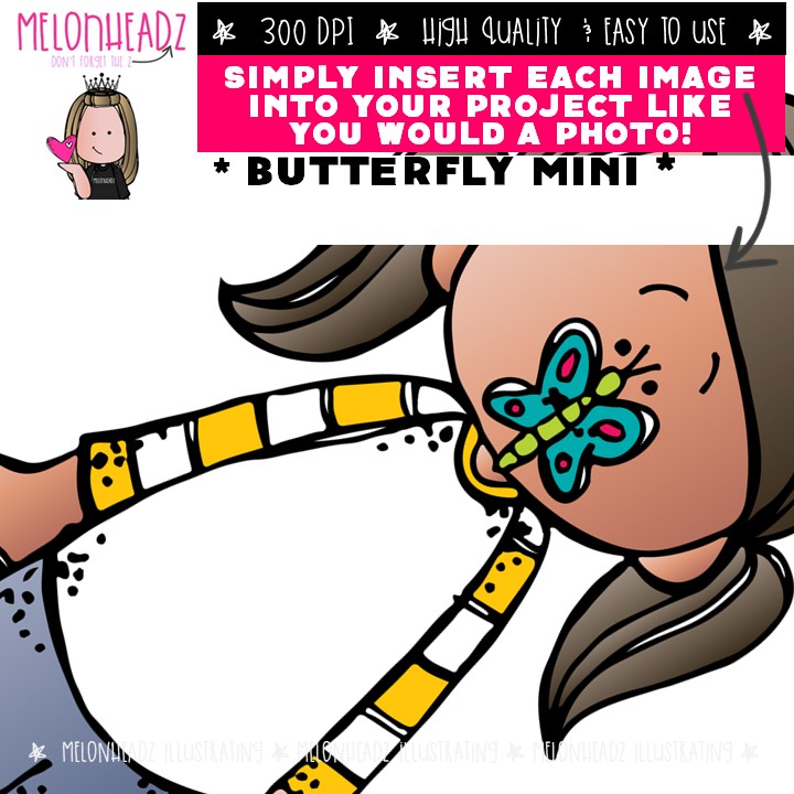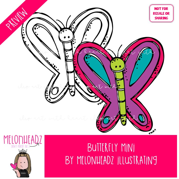 Butterfly clip art, insect, bug Mini: This illustrated set contains all of the clip art images as shown in the preview picture. COLORED and BLACK AND WHITE illustrations included.