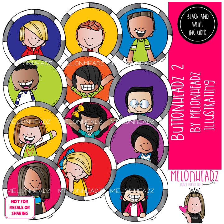 Buttonheadz clip art 2, kids, circles COMBO PACK