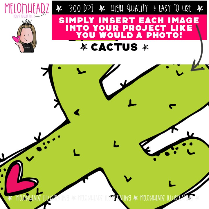 Cactus clip art, Single Image, desert, plant: This illustrated set contains all of the clip art images as shown in the preview picture. COLORED and BLACK AND WHITE illustrations included.