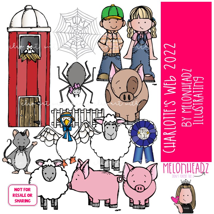 Charlotte’s Web clop art 2022, book companion, literature: This illustrated set contains all of the clip art images as shown in the preview picture. COLORED illustrations included.