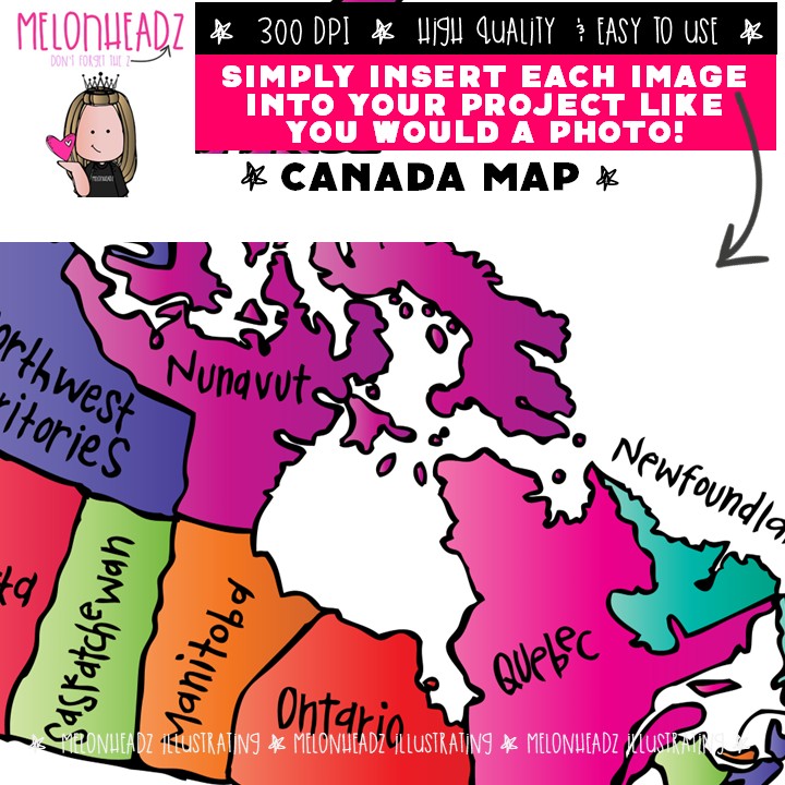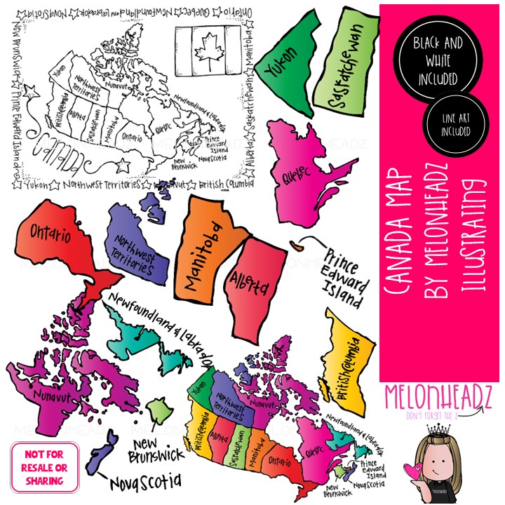 Canada Map clip art, regions COMBO PACK